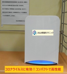 7月より新型コロナウイルスに有効と確認されました深紫外線LED搭載の空間除菌消臭装置(商品名:エアロピュア)を購入し設置しております。 他にも状況に応じて様々な院内感染予防対策を継続して?っておりますが、新型コロナ蔓延より更に消毒を強化しております。 末尾ながら、地域の皆様が「ここは?丈夫」と思って頂けるよう、開業以来継続して参りました院内感染予防対策を、スタッフ?同、更に徹底して参りたいと思います。